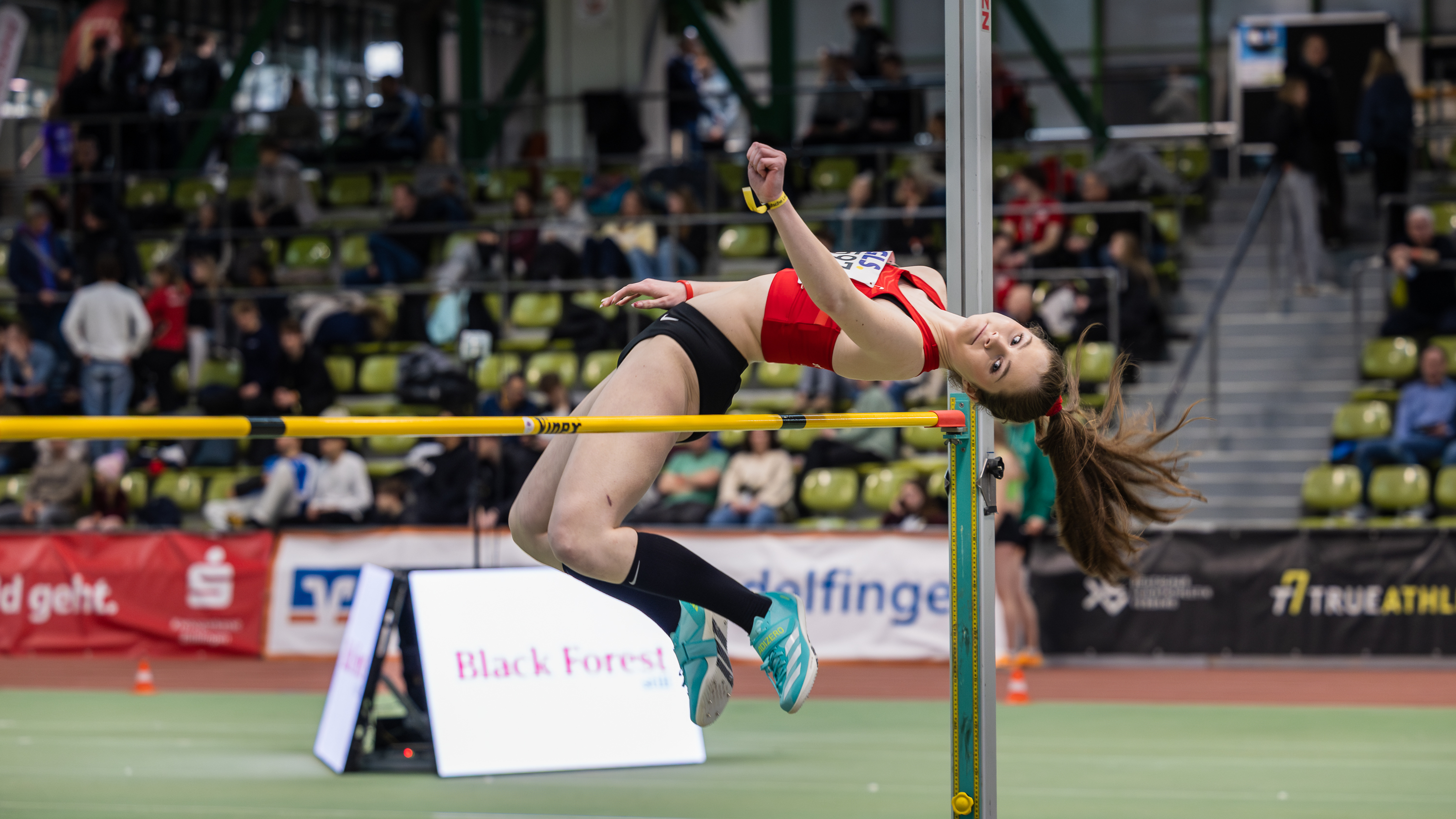 Am letzten Wochenende fanden in Sindelfingen (BW) die Deutschen U20 Meisterschaften in der Halle statt. Von der DJK SG Tackenberg ging die hochgemeldete U18 Athletin Ida Alfes im Hochsprung an den Start. Nach zuletzt zwei sehr guten Hallenwettkämpfen, wo sie ihre persönliche Bestleistung auf 1,76m verbessern konnte, lief es in Sindelfingen insgesamt nicht wirklich rund für die junge Oberhausenerin. Als Vierte in der Meldeliste war sie angereist und im Einspringen sah es zunächst auch gut für Ida aus. Mental war sie fit und freute sich auf den Wettkampf. Im Wettkampf selbst lief es dann aber nicht so gut, denn sie kam einfach nicht wirklich nach oben. Die Einstiegshöhe von 1,60m absolvierte sie erst im zweiten Versuch, während sie die folgende Höhe von 1,64m dann wieder wie gewohnt im ersten Versuch übergesprungen hat. Die folgenden 1,68m waren an dem Tag, der nicht ihrer war, aber zu viel des Guten und nach drei Fehlversuchen musste sie sich, sichtlich enttäuscht, aus dem Wettkampf verabschieden. Mit dem 8. Platz blieb sie leider deutlich unter ihren Möglichkeiten. Gemeinsam mit ihren Trainern wird sich Ida, nach einer Analyse der Sprünge, in den kommenden Wochen auf die Freiluftsaison vorbereiten. Das Ziel ist die Qualifikation für die Deutschen U18 Meisterschaften, die im Juli wieder in Bochum-Wattenscheid stattfinden. Wir drücken die Daumen.