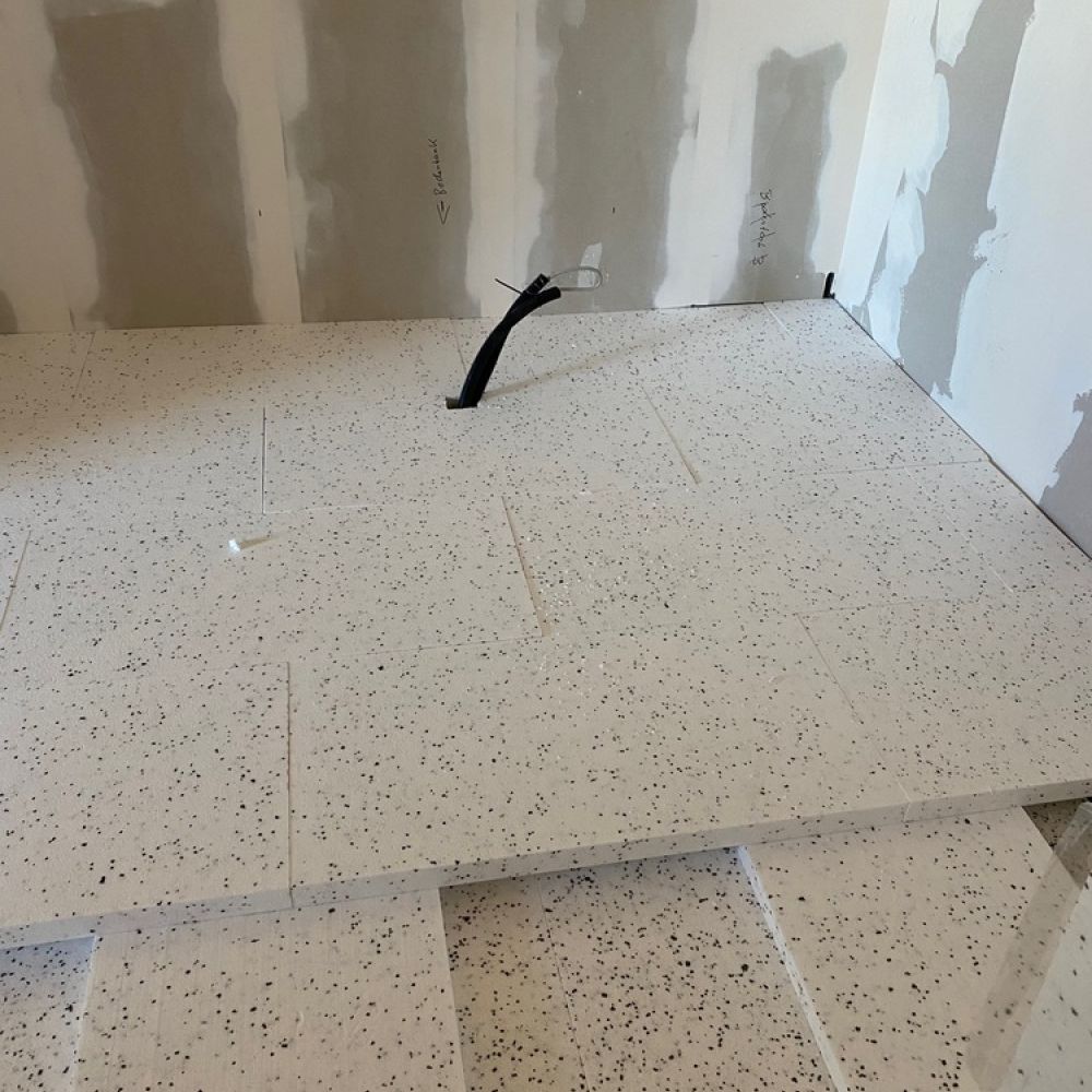 Der Boden wird gedämmt mit einer dicken Schicht aus Styropor.