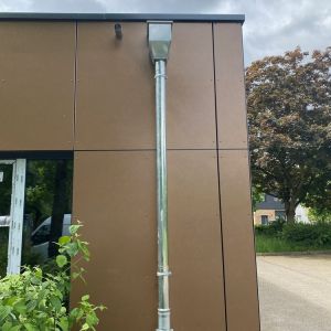 Im Mai bauen die Dachdecker die Lüftungen in den WCs ein und montieren die Fallrohre