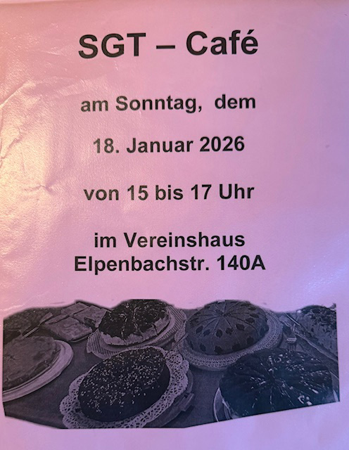 18. 1. 2026 SGT Café 02. Januar 2026 Ellen Weber Allgemein Ausgerichtet wird das Café von der Rückschulungsgruppe von Klaudia Messer. Ellen Weber Zurück Weiter