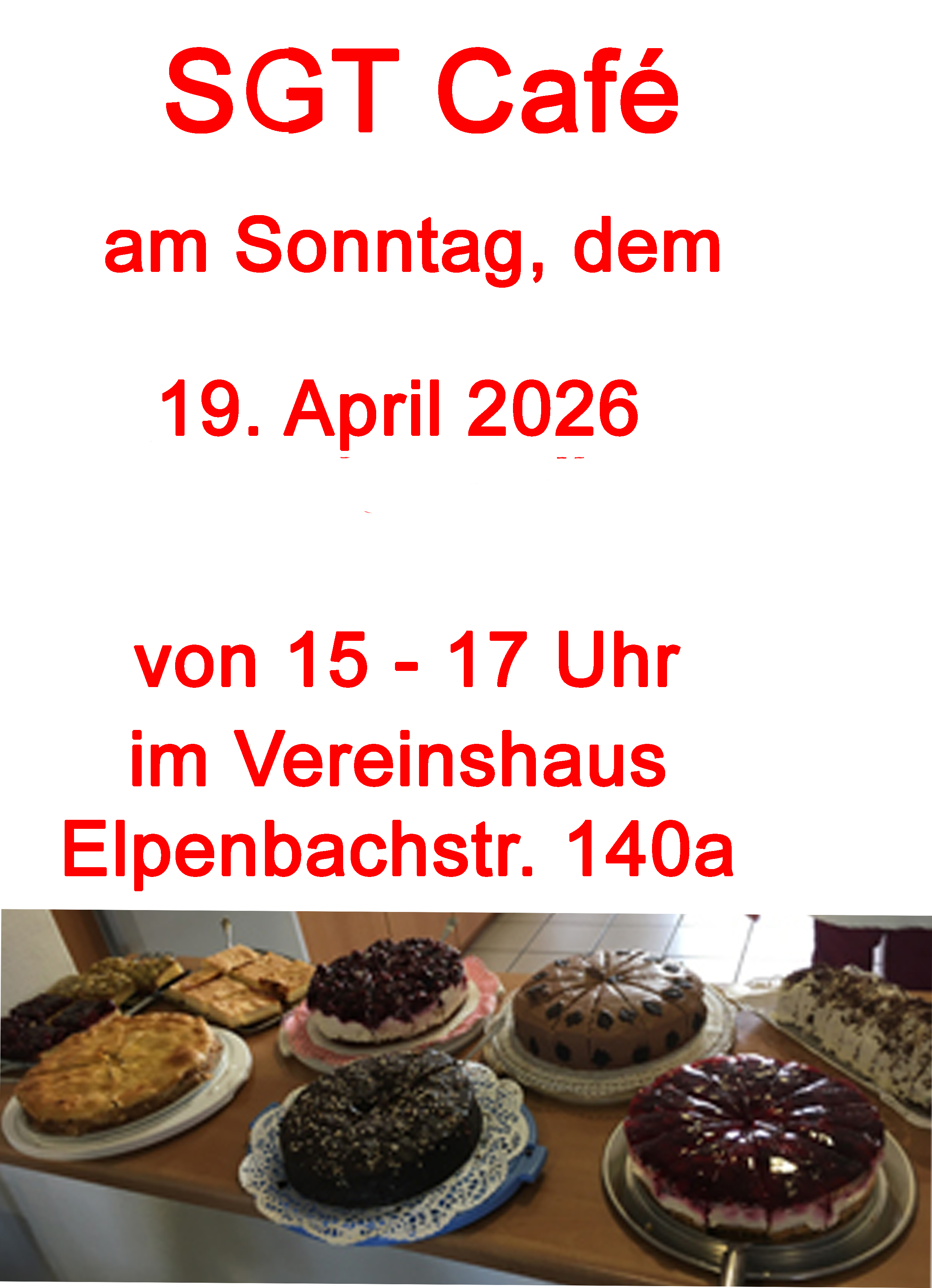 Bereits jetzt möchten wir zum SGT Café am 19.4.26 einladen. Ausgerichtet wird es von der Gruppe