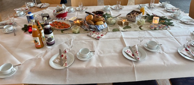 Mit sehr schönen Worten bedankte sich Christa im Namen aller Teilnehmerinnen der Rückenschulung bei Klaudia Messer für die sehr guten fachkundigen Übungsstunden. Dann begann unser tolles Frühstück bei der Weihnachtsfeier im Vereinshaus. Alle hatten etwas Leckeres mitgebracht und der Tisch war schön geschmückt. Nun durfte nach Herzen geplaudert werden was beim Training nicht erwünscht ist.