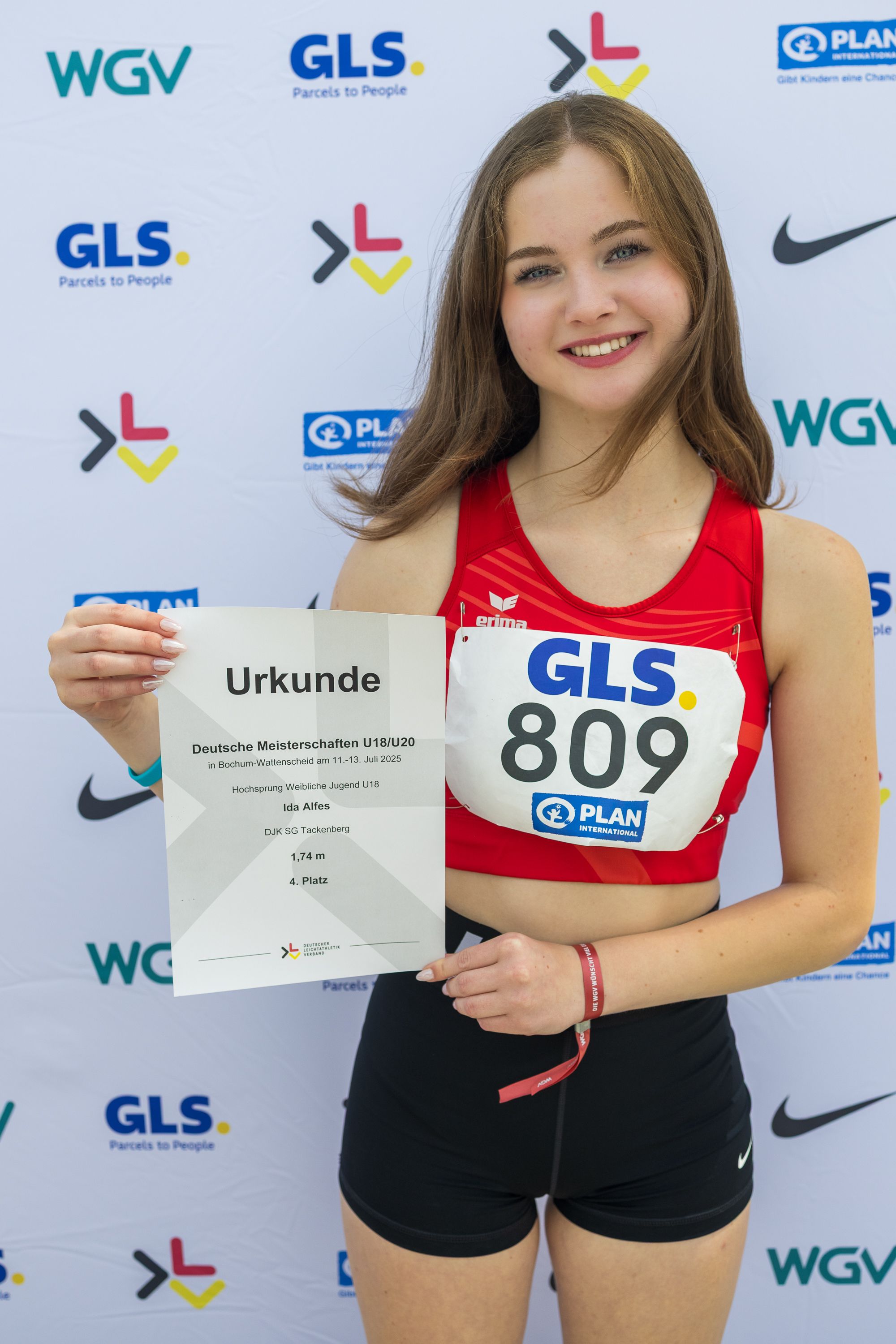 Die junge Hochspringerin Ida Alfes (16) ist, aufgrund ihrer guten Leistungen in der Saison 2025, in den Bundeskader der U18 berufen worden. Ausschlaggebend waren ihre sehr guten konstanten Sprungergebnisse, verbunden mit der deutlichen Steigerung ihrer persönlichen Bestleistung. Dies gilt vor allem für Ihre Ergebnisse bei den Deutschen Meisterschaften 2025 in Bo-Wattenscheid. Mit übersprungenen 1,74m und einer Steigerung um vier Zentimeter wurde Ida vierte und erreichte hier sogar die Qualifikationshöhe für die U18 Europameisterschaften im kommenden Jahr in Rieti bei Rom. Nach der erneuten Aufnahme in den Landeskader hat der Bundestrainer Nachwuchs, Jan-Gerrit Keil, die sympathische Athletin in Absprache mit dem Landestrainer (Roman Buhl) sowie ihren beiden heimischen Trainern von der DJK SG Tackenberg, Ralf Ruhrmann und Ralf Ingenwerth, berufen. Über den Winter gilt es nun, konsequent zu trainieren und die Grundlage für die neue Saison zu legen. Schwerpunkte des Trainings sind neben der Kraft auch die Koordination und Sprungtechnik. Mitte Januar starten dann die Wettkämpfe in der Halle mit den Regionsmeisterschaften und dem ersten Höhepunkt, den Nordrheinmeisterschaften (01. Februar) in Leverkusen. Wir drücken Ida die Daumen, dass alles gut verläuft und sie ihr Ziel, „EM Rieti 2026“ greifbar machen kann.