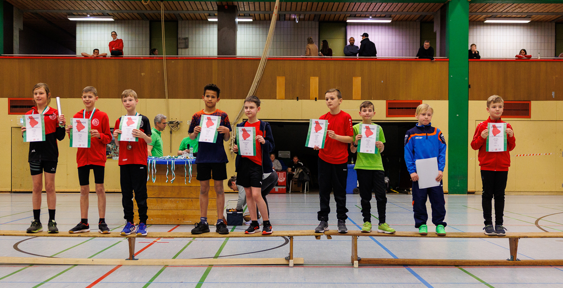 Bei den Jungs war das Teilnehmerfeld der DJKler zwar geringer, dennoch siegte Lukas Alexander Tewes in der Klasse M10 mit guten Ergebnissen. Er lief die 50m als Schnellster ins Ziel mit 8,6s und war auch im Medizinballstoßen mit einer Weite von 5,77 m ungeschlagen. In der M11 ging Simon Engel an den Start. Er erreichte eine Gesamtpunktzahl von 440 und belegt damit Platz 10.