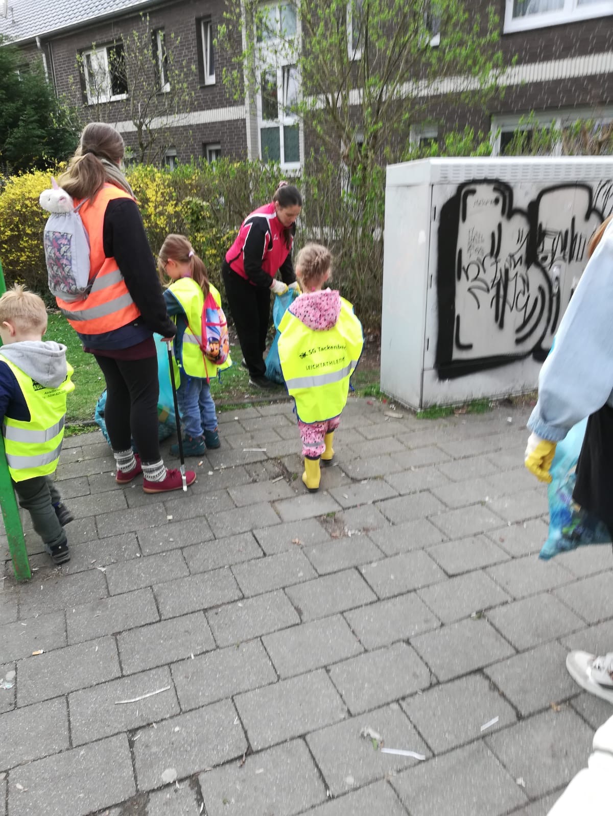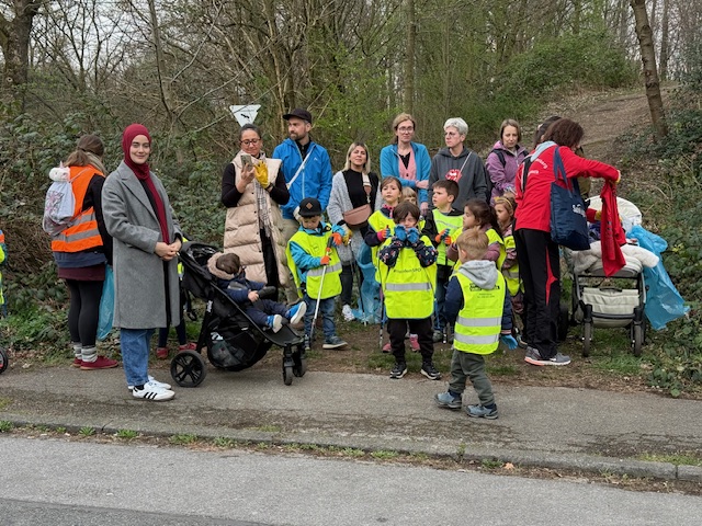 Die jungen und teilweise noch sehr kleinen Leichtathleten waren, wie in den Jahren zuvor, wieder unterwegs um die Straßenränder vom Müll zu befreien. Ausgestattet mit gelben Warnwesten, Handschuhen, Zangen und Müllsäcken war eine Gruppe am Vereinsheim unterwegs und die andere im kleinen Wäldchen auf der Wasgenwaldstraße. Begleitet wurden sie von ihren Übungsleitern, Müttern und Eltern.