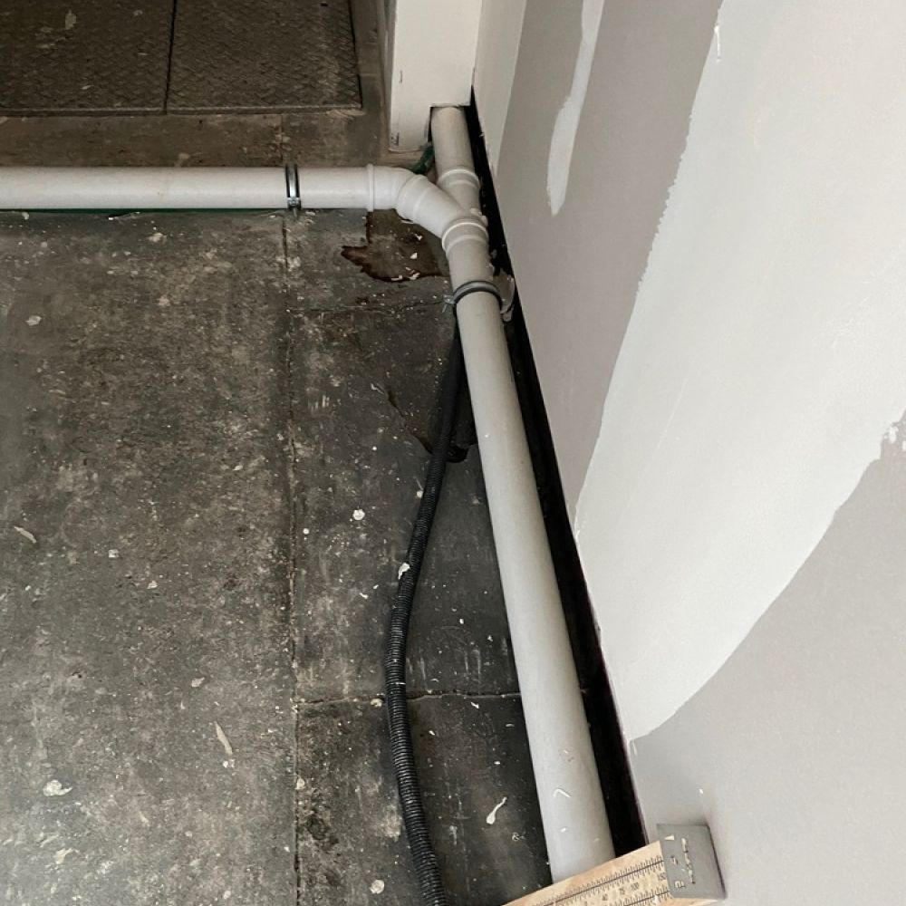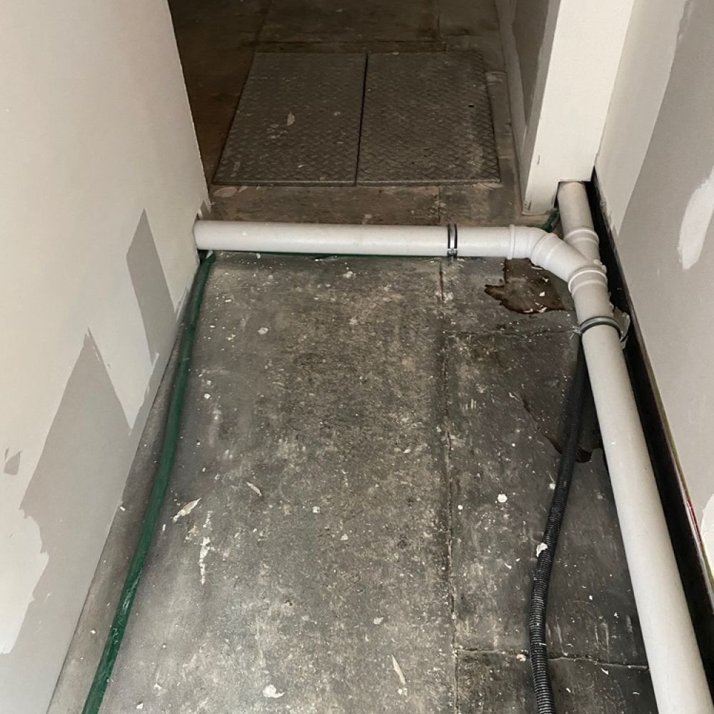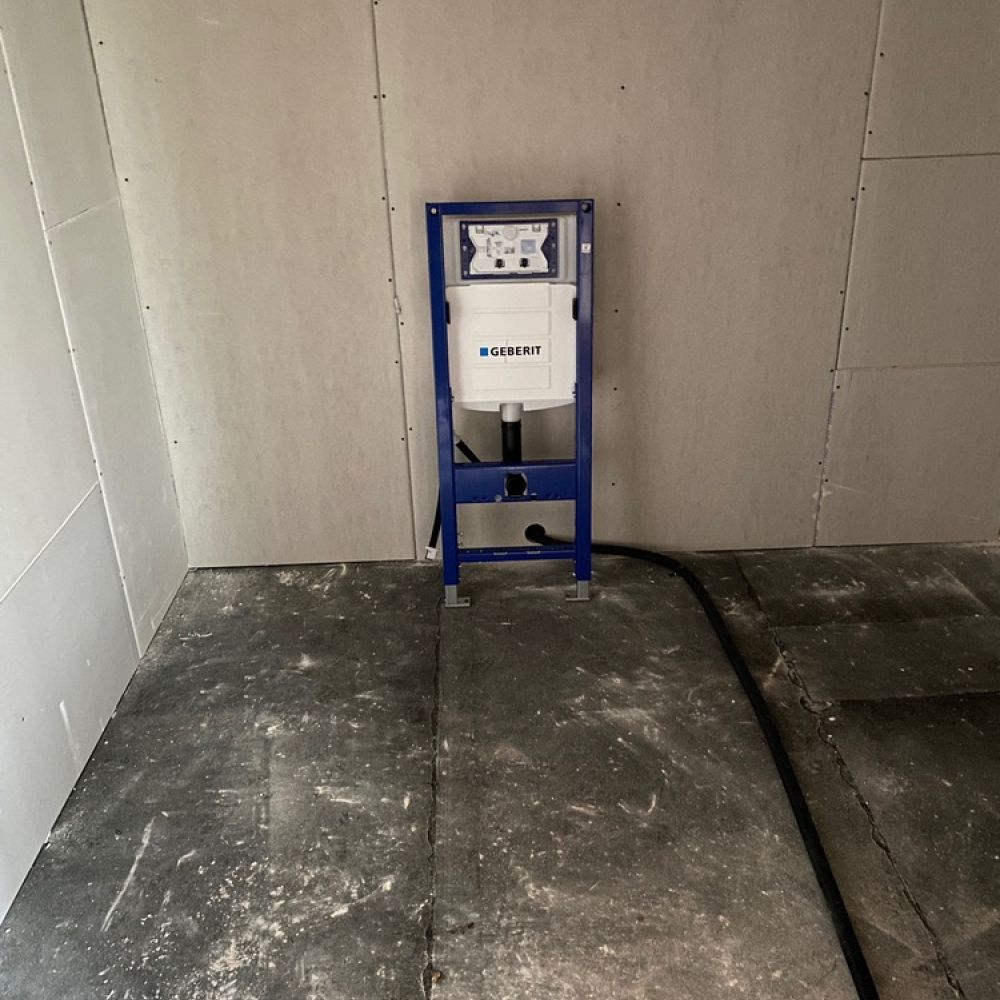 Toiletten werden montiert und Leitungen verlegt