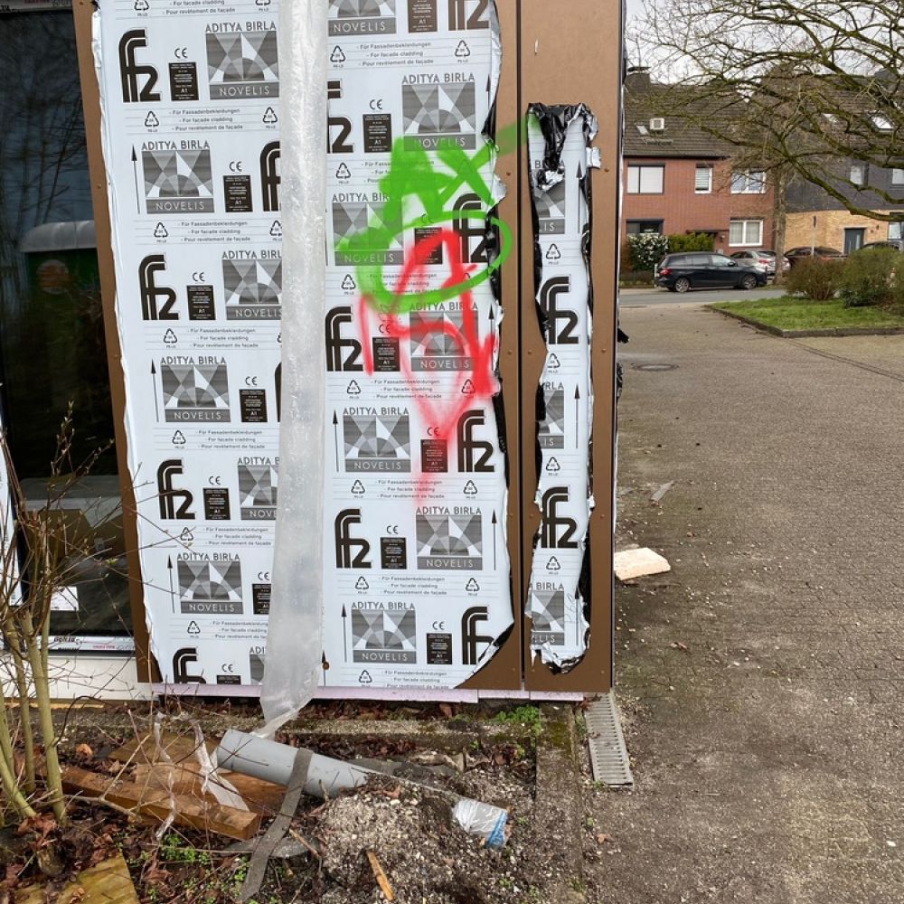 Am 19.03. haben wir die ersten Graffiti an der Fassade